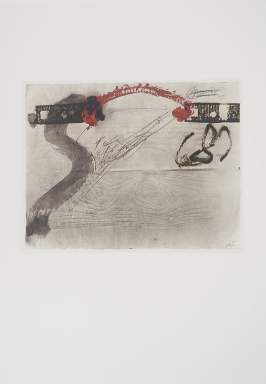 Antoni TAPIES : La traversée du pont rouge - Lithographie signée