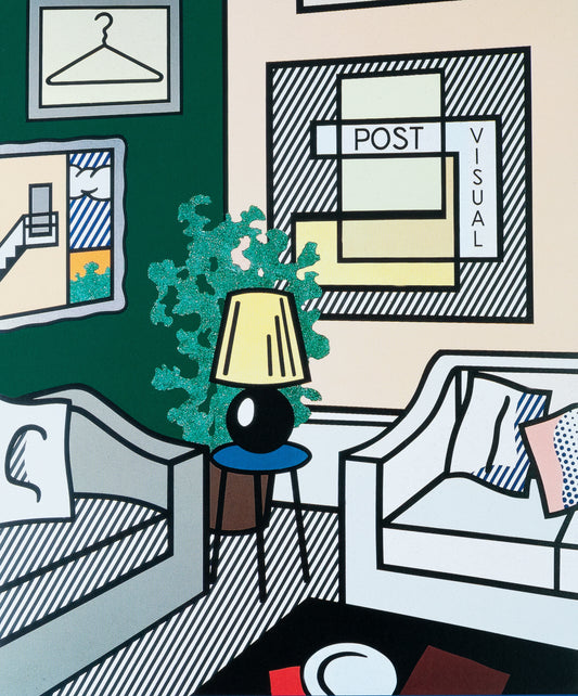 Roy LICHTENSTEIN : Intérieur à la lampe - Affiche originale en couleurs