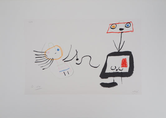 Joan MIRO : Femme et oiseau surréaliste - Lithographie signée