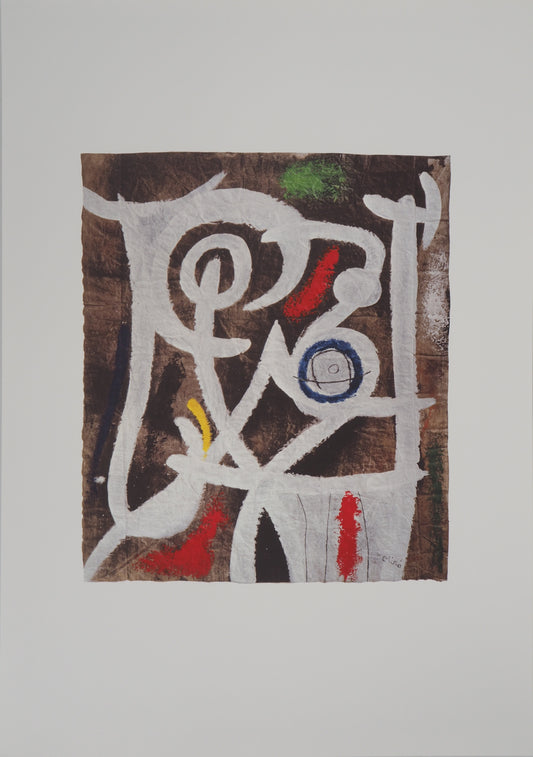 Joan MIRO : Homme au soleil rouge - Linogravure originale signée