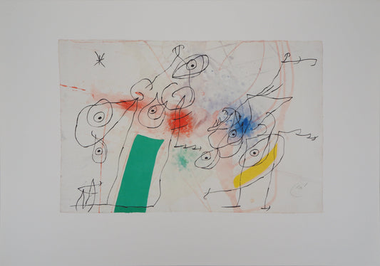 Joan MIRO : Femme surréaliste et ses enfants - Lithographie signée