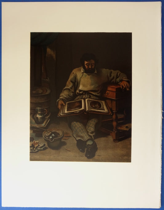 Gustave COURBET : Marc Trapadoux examinant un livre d'estampes - lithographie en couleurs