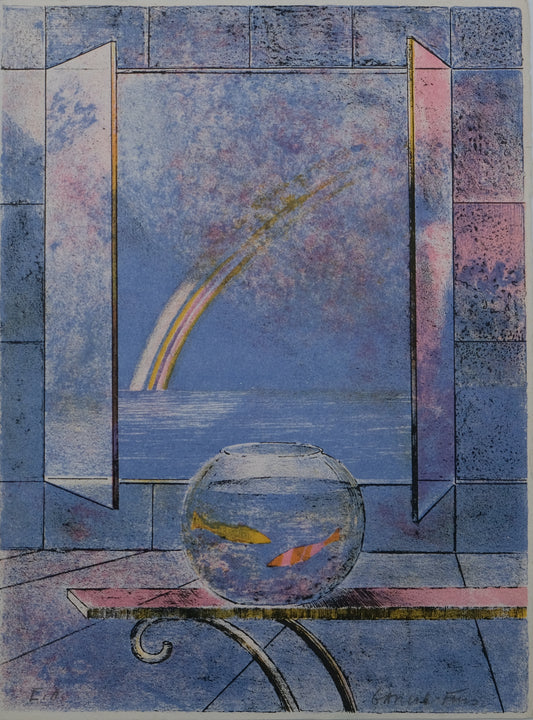 Pierre GARCIA FONS : Composition à la fenêtre Aqua - Lithographie originale signée