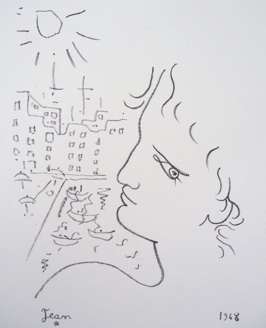 Jean COCTEAU : Venise, profil d'homme - Lithographie signée