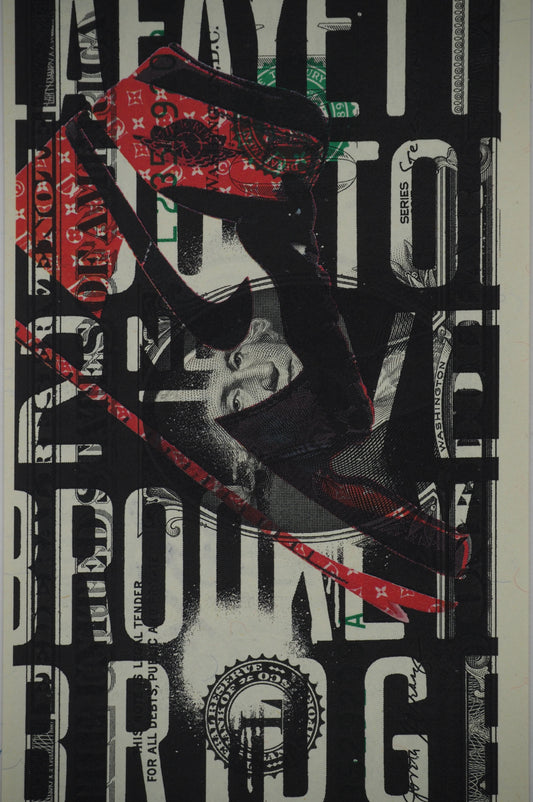 Death NYC : Red Air Jordan 1 LV in the NYC subway - Sérigraphie originale signée