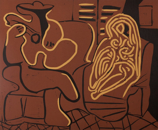 Pablo PICASSO : Femme assise et le guitariste - Linogravure