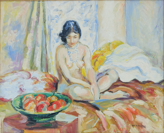 Katia PISSARRO : Nu aux fruits - Huile sur toile signée