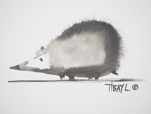 Laszlo TIBAY : L'hérisson - Dessin original signé