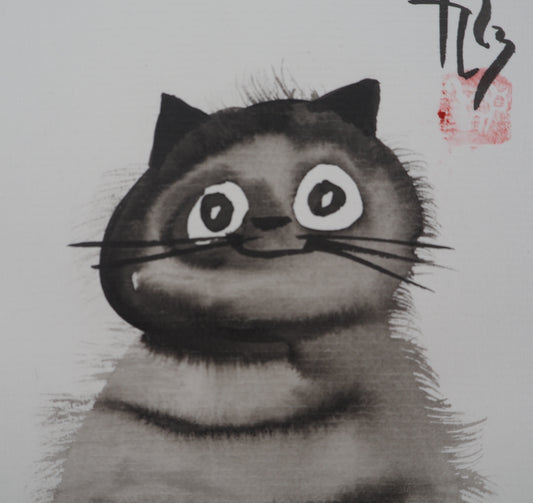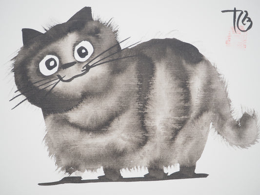 Laszlo TIBAY : Chat souriant - Dessin original signé