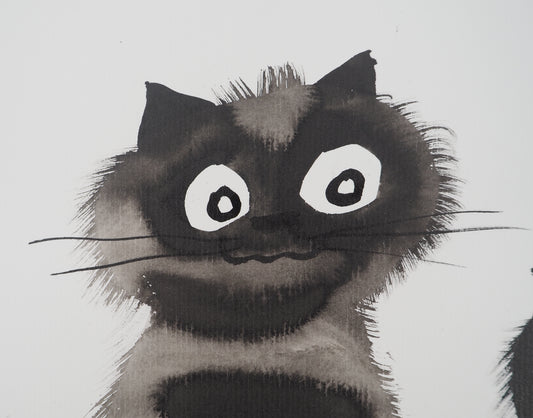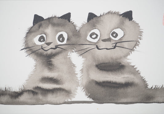 Laszlo TIBAY : Deux chatons heureux - Dessin original signé