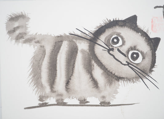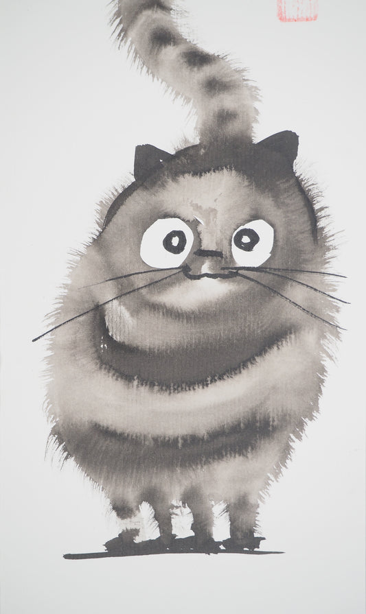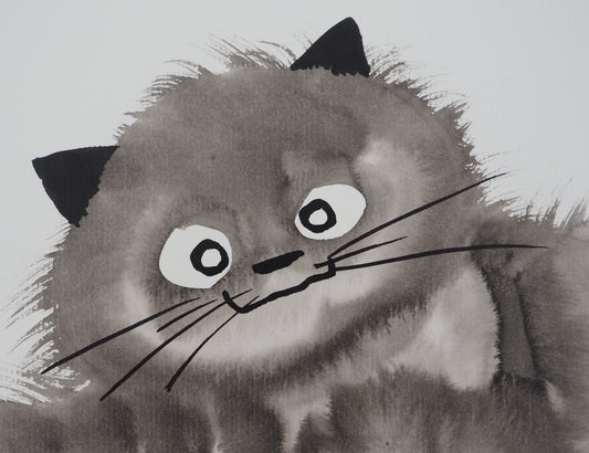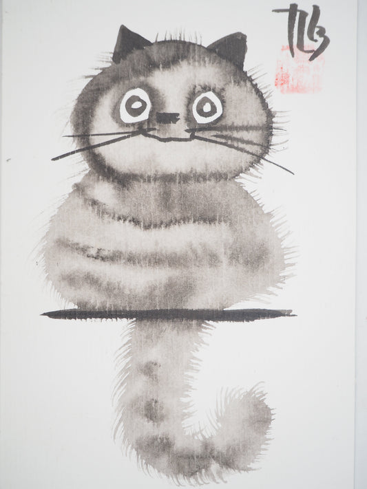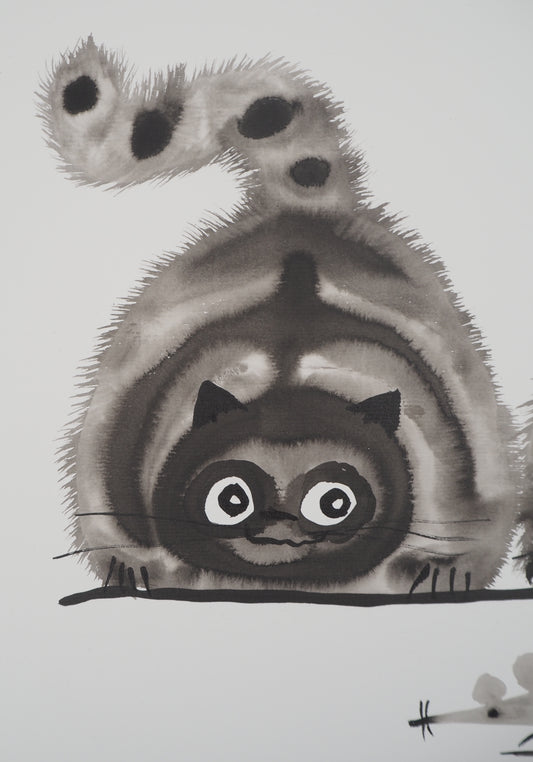 Laszlo TIBAY : Chaton touffu - Dessin original signé