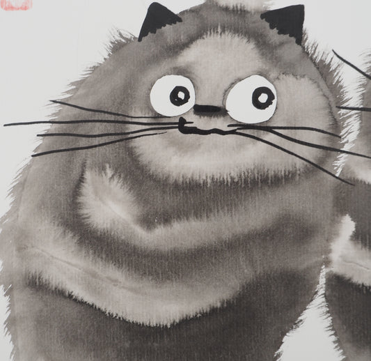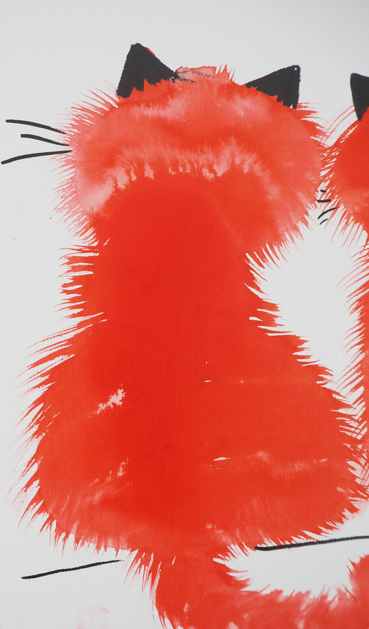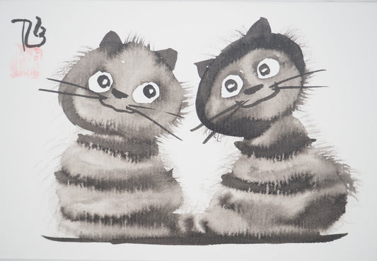 Laszlo TIBAY : Couple de chats - Dessin original signé