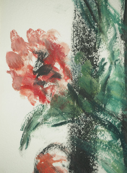 Roger CRUSAT : Bouquet d'anémone rouges - Gouache sur papier