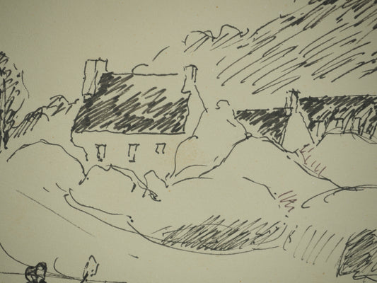 Roger CRUSAT : Au loin le Village - Dessin original signé