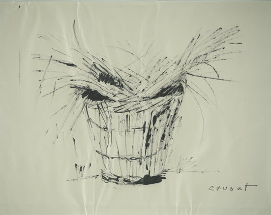 Roger CRUSAT : Le seau de paille - Dessin original signé