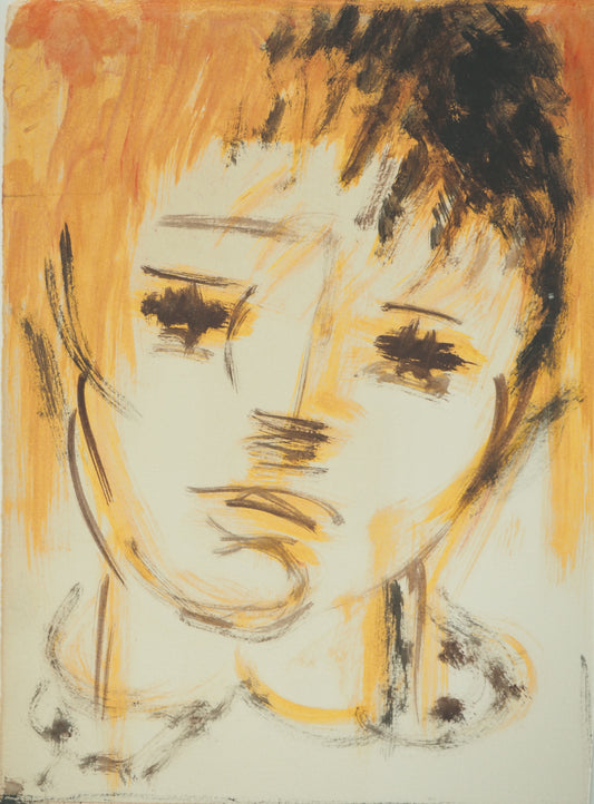 Roger CRUSAT : Jeune fille triste - Gouache sur papier