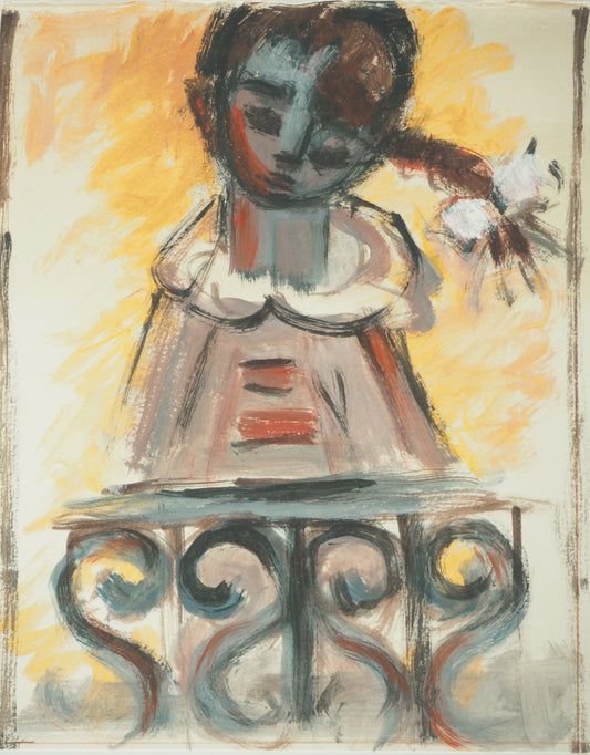Roger CRUSAT : Jeune Fille à la Fenêtre - Gouache sur papier