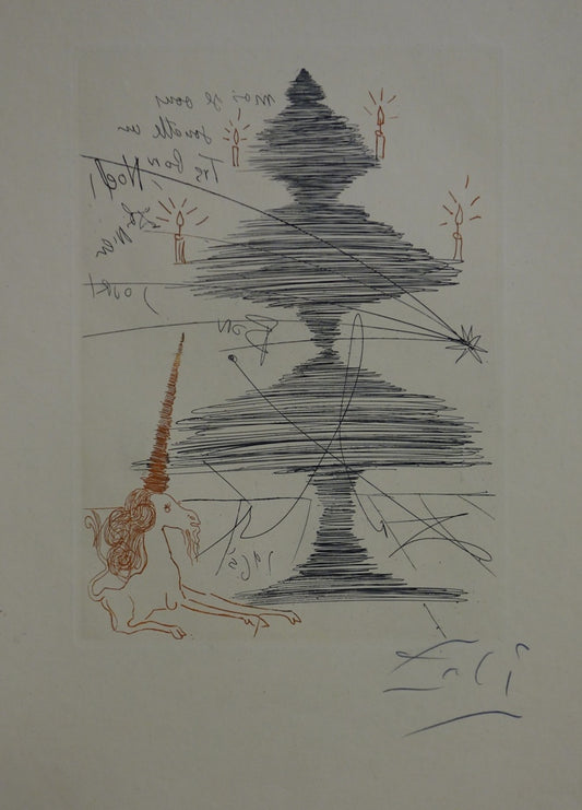 • Salvador DALI : Arbre de Noël à la Licorne - Gravure originale signée