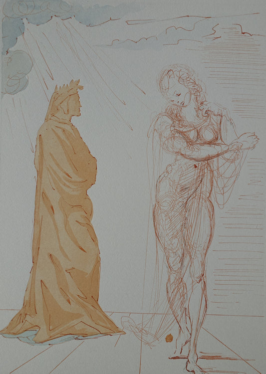 Salvador DALI : Virgile réconforte Dante - Bois gravé original