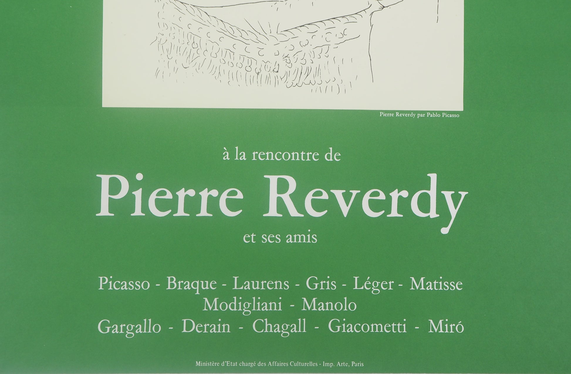 INFORMATION : Affiche éditée à l’ occasion de l’exposition « A la rencontre de Pierre Reverdy et ses amis ». Elle présente un portrait de Pierre Reverdy par Pablo Picasso éditée en 1970 pour le Musée National d’ Art Moderne (Paris)
