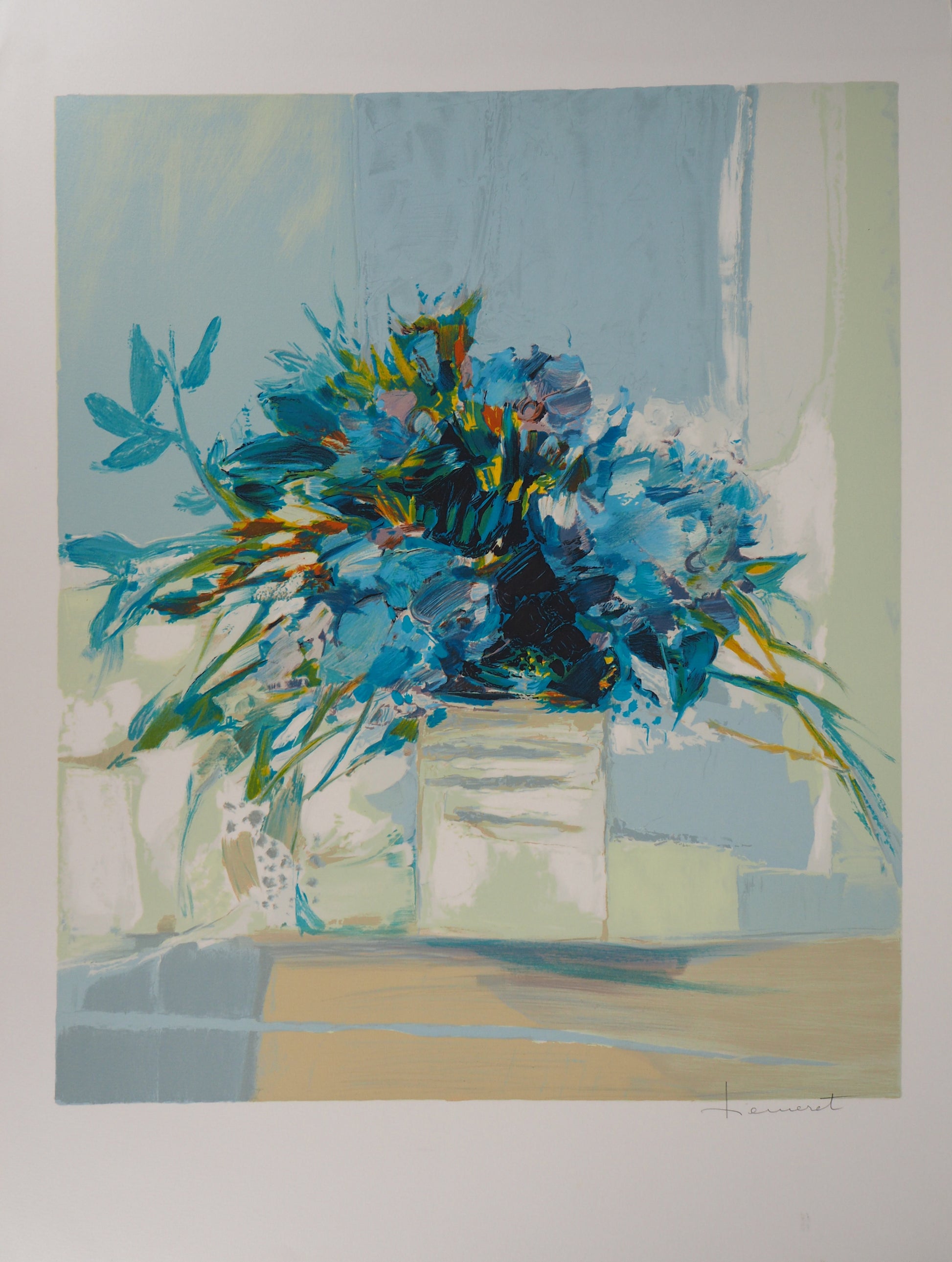 Claude HEMERET: Ramo azul - Litografía original firmada
