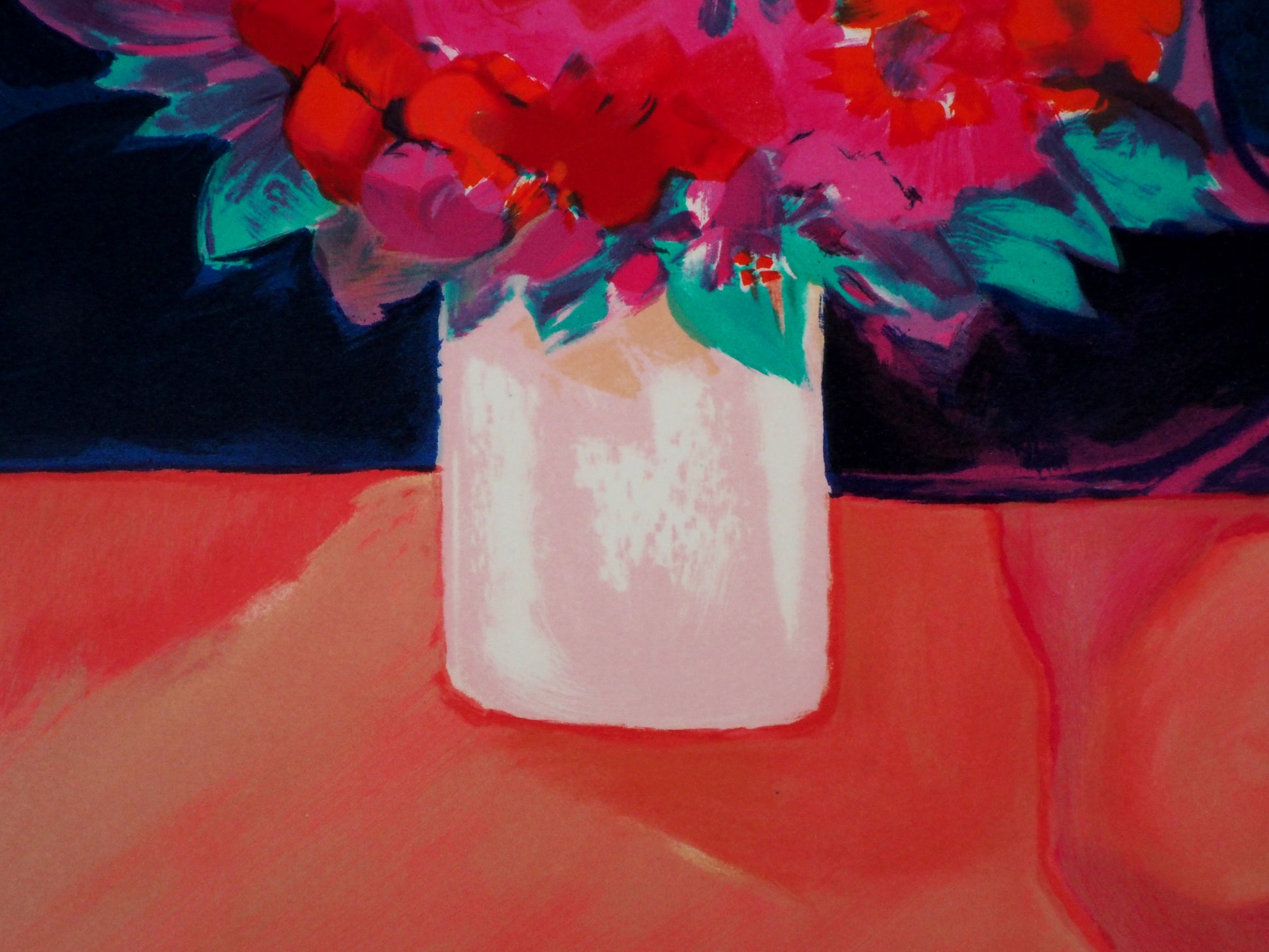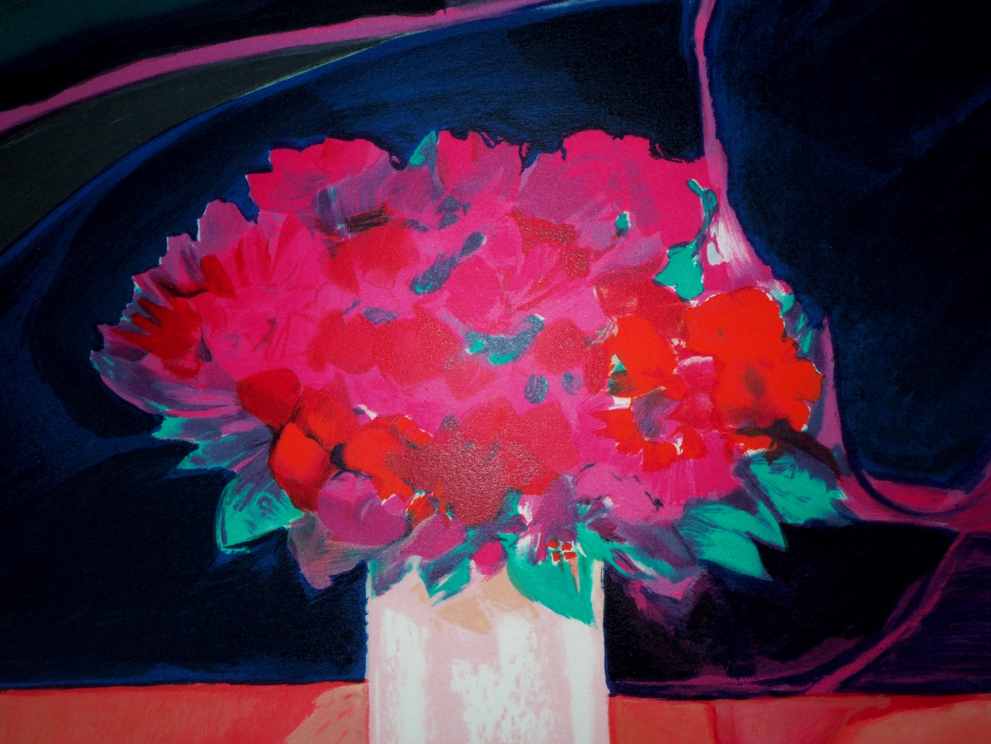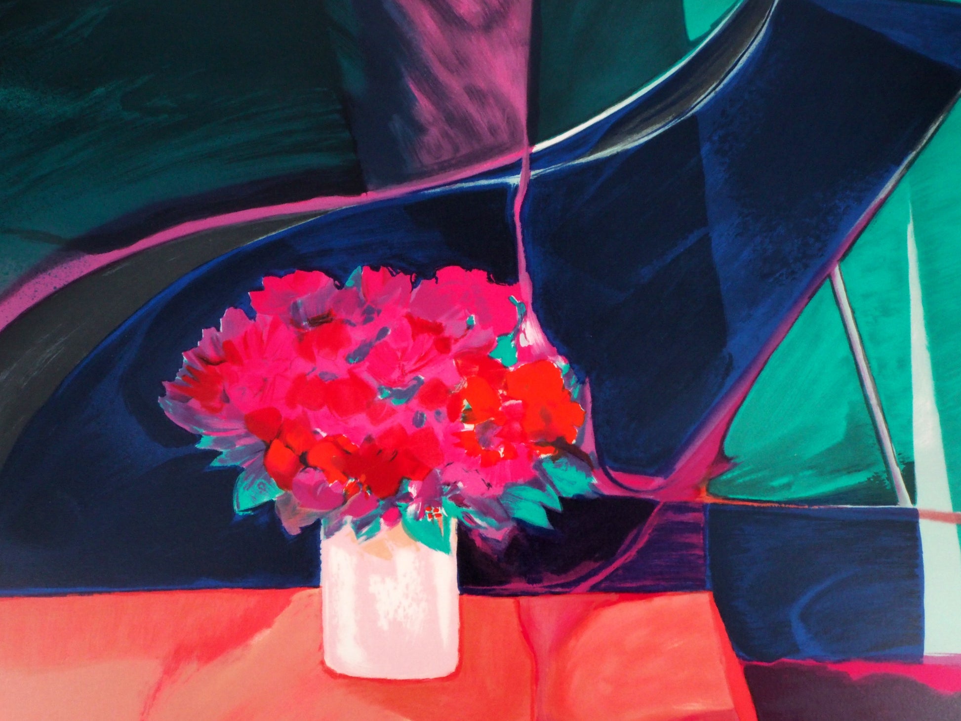 Claude HEMERET: Ramo rosa y piano - Litografía original firmada