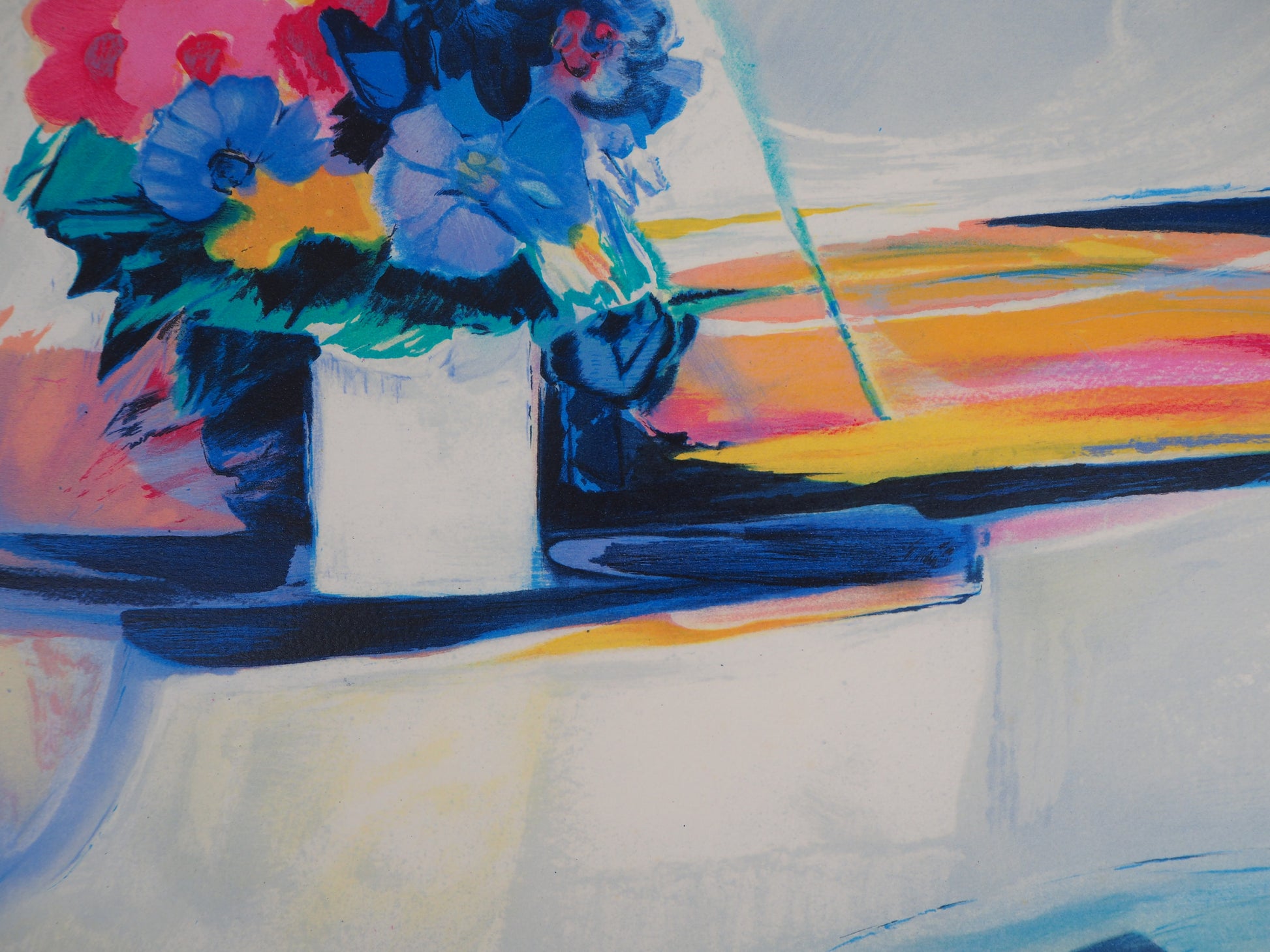 Claude HEMERET: El piano blanco - Litografía original firmada