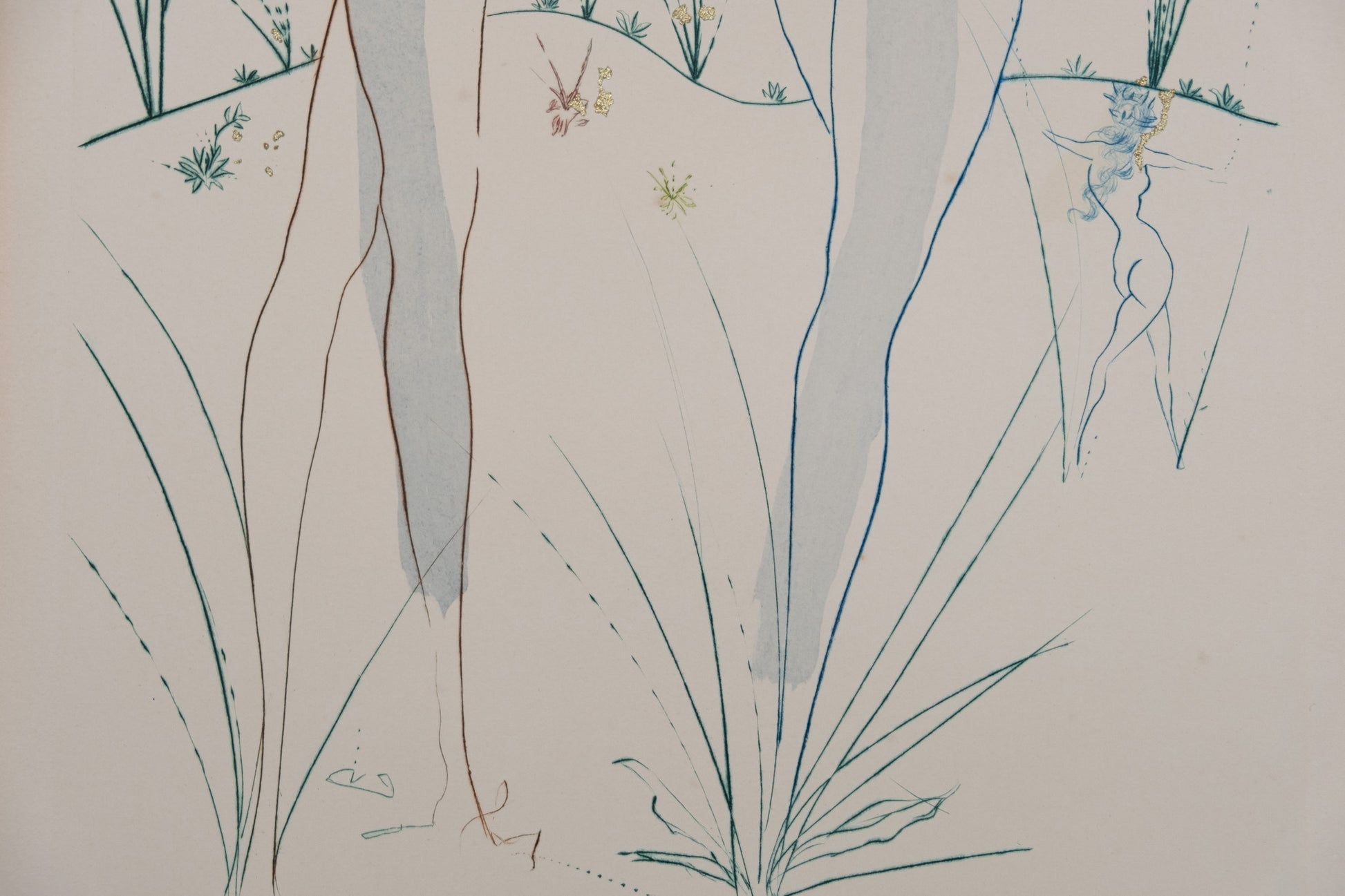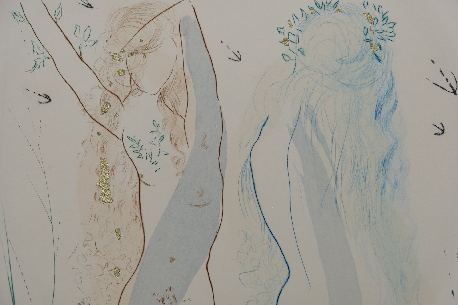 Gravure originale en couleurs (pointe sèche et aquatinte) rehaussée d'encre dorée