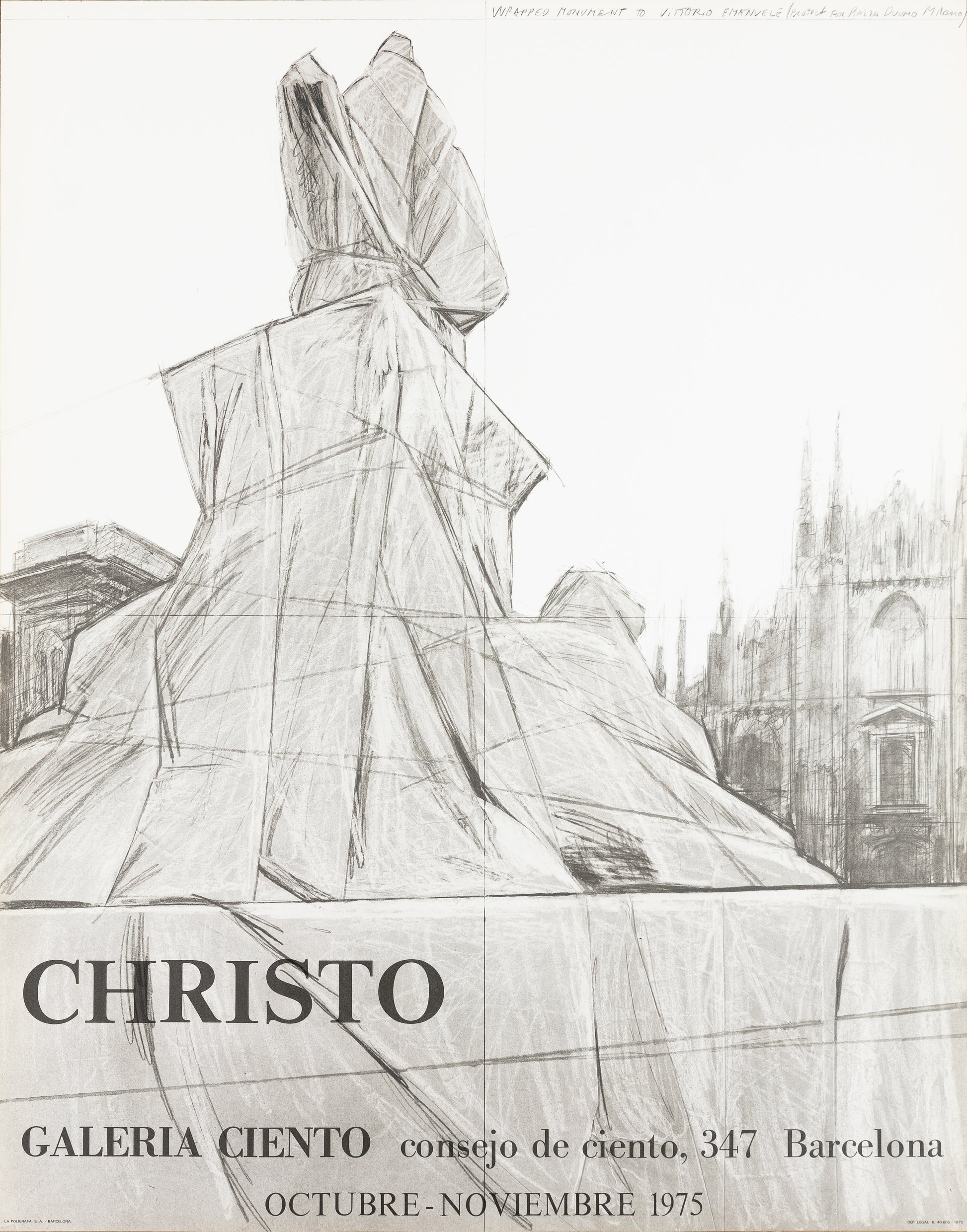 INFORMATION : Editée par la Galerie Ciento (Barcelone, Espagne) à l'occasion de l'enveloppement par Christo du monument du Vittorio Emanuele II situé en face du Duomo de Milan (Italie) en 1975