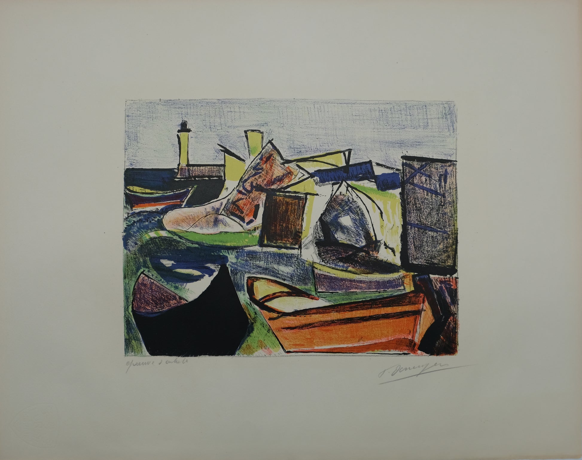 François DESNOYER : Le port de Sète - Lithographie originale signée