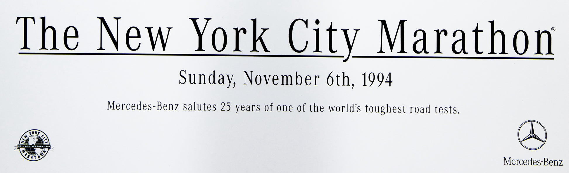 INFORMATION : Affiche éditée à l'occasion du marathon de NYC de 1994 avec pour sujet les tours (Twin Towers) emblématiques de Manhattan (New-York, USA), édition sponsorisée par Mercedes-Benz