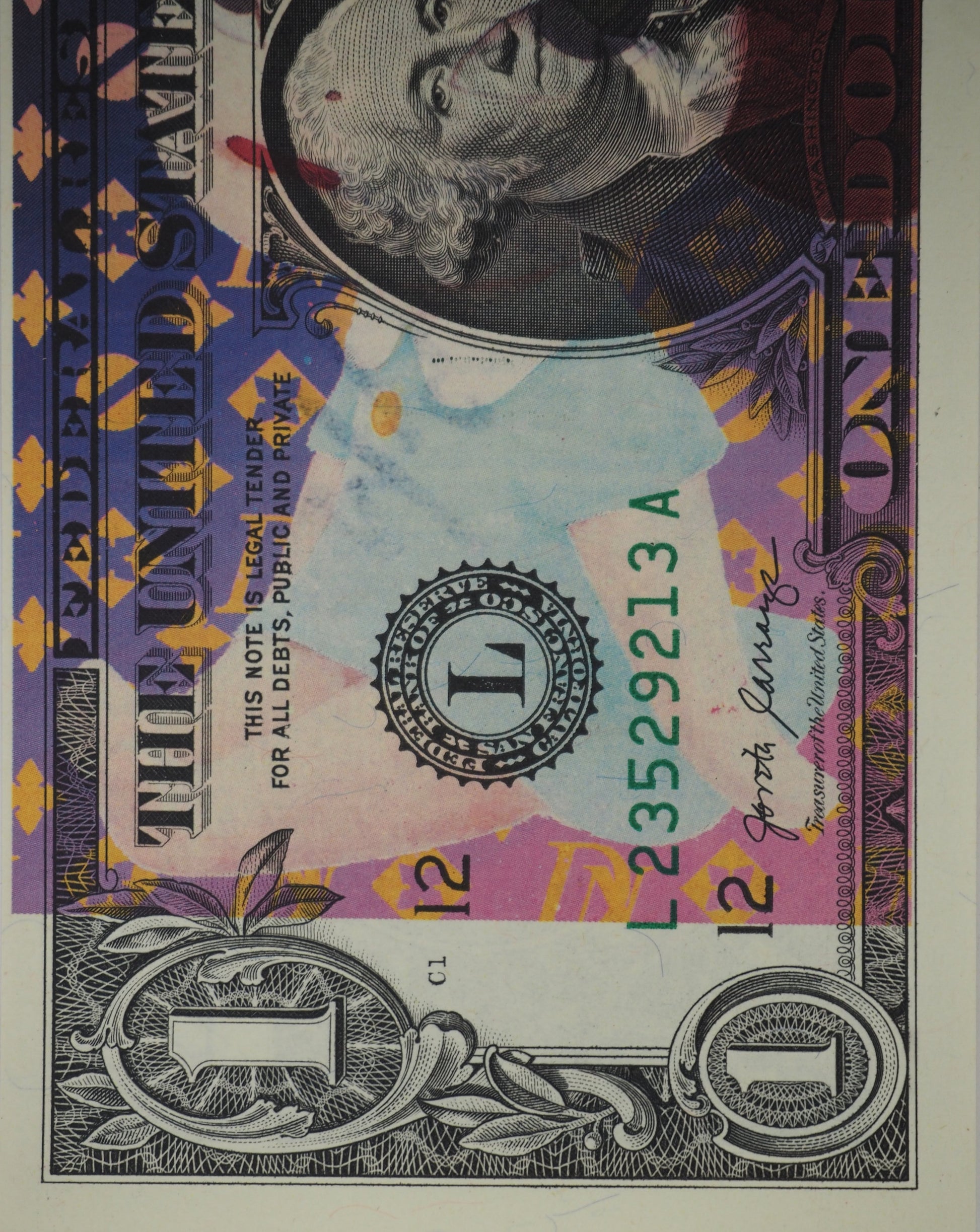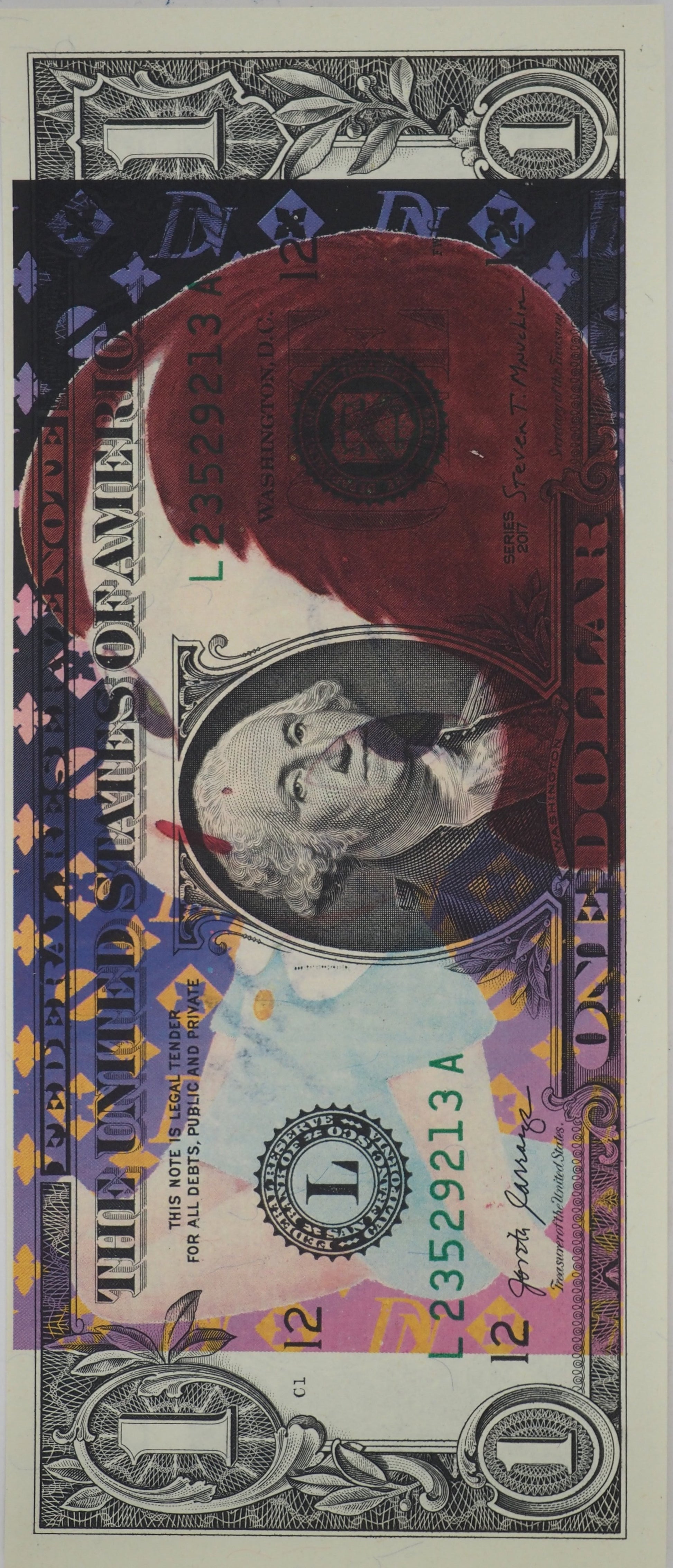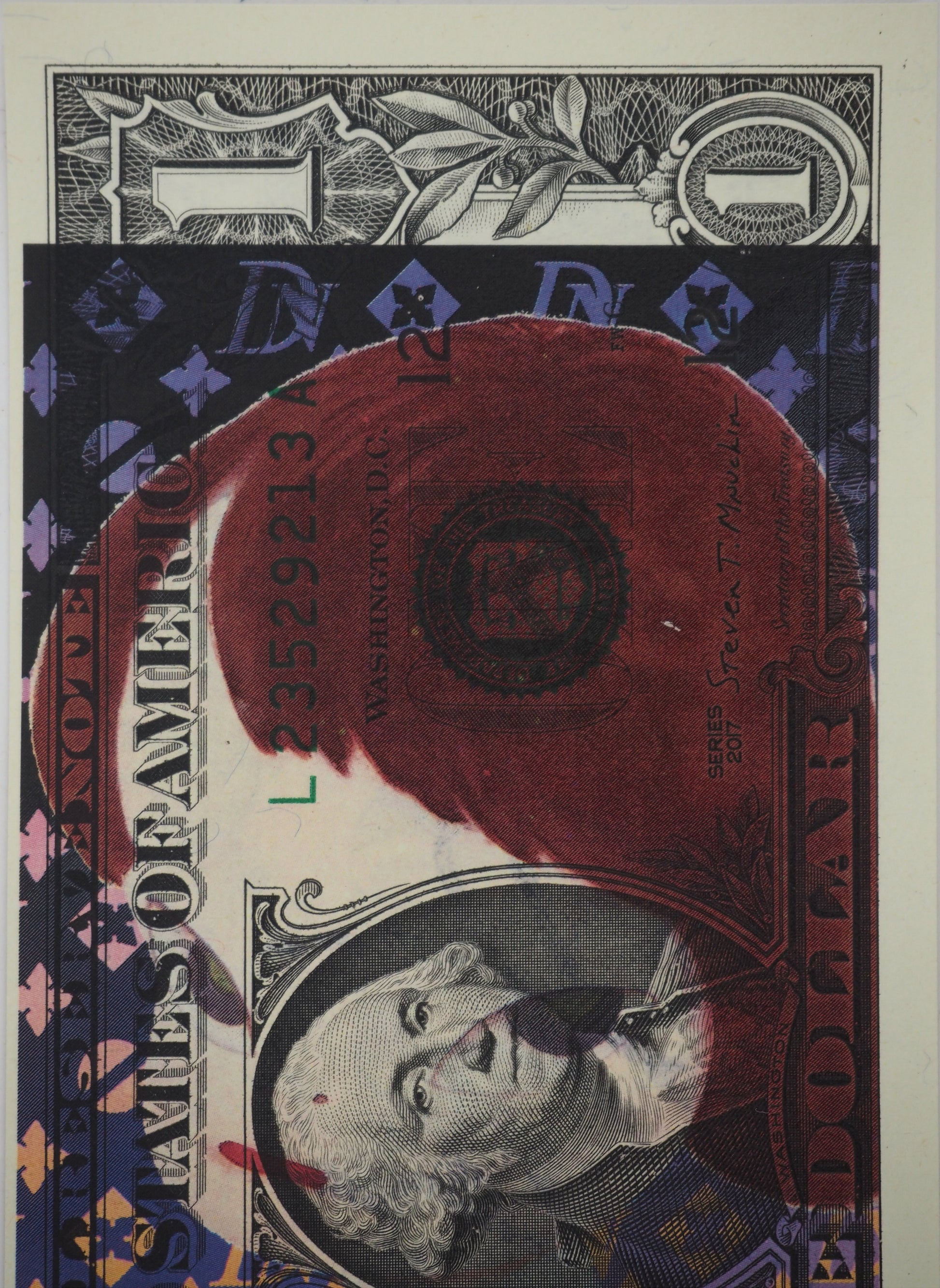 Sérigraphie originale de Death NYC sur un billet de 1$