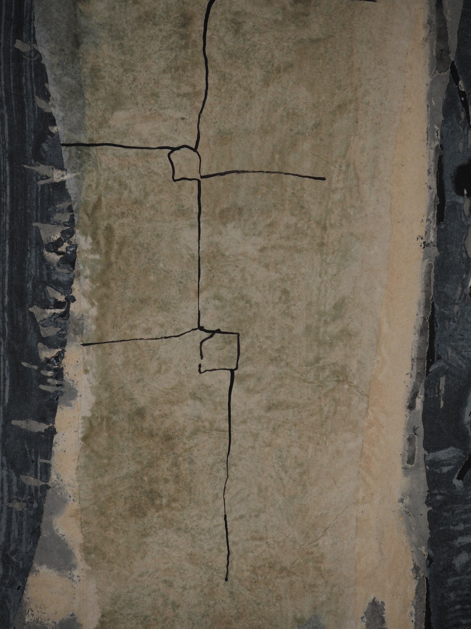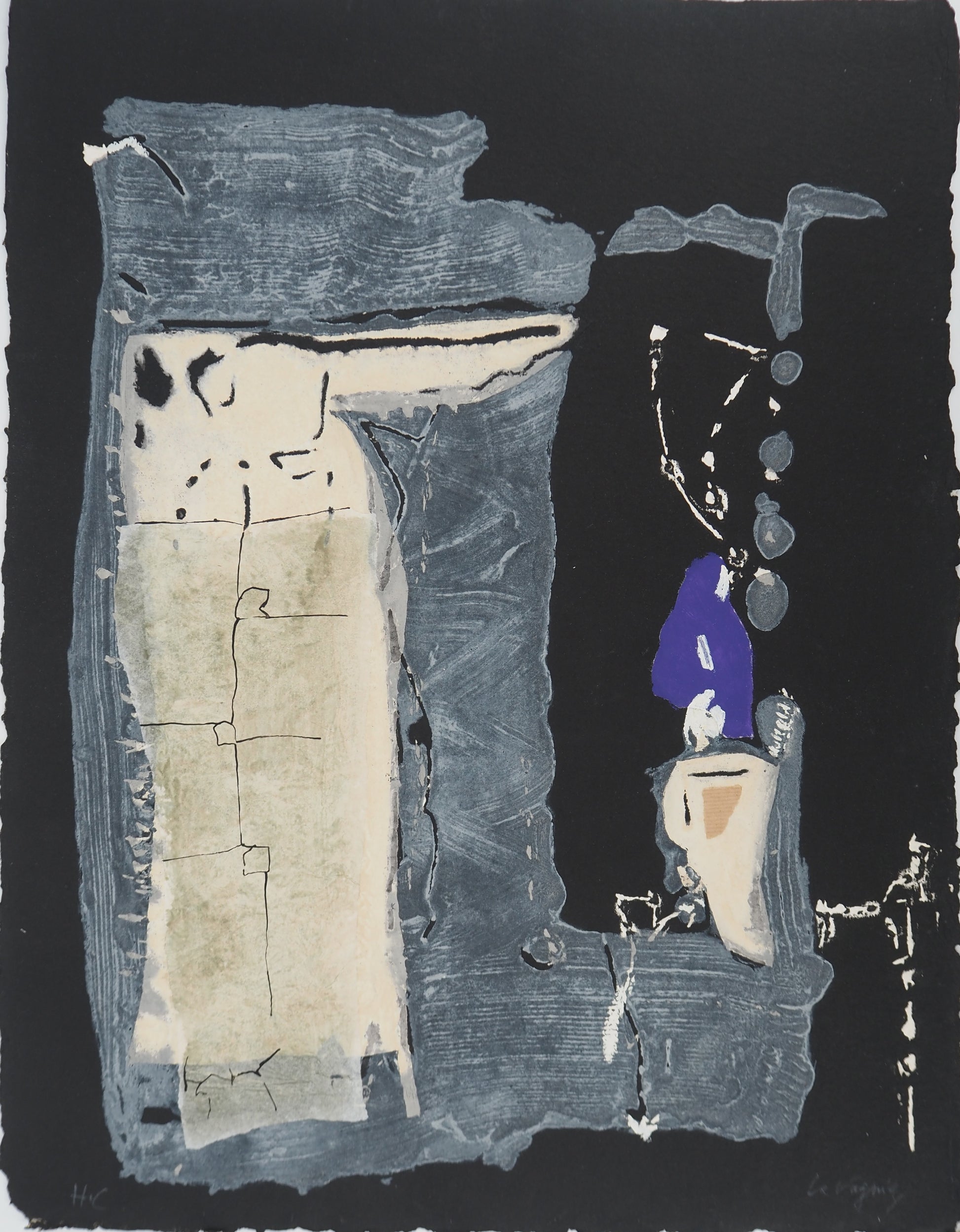 Gravure originale au Carborundum avec collage et peinture