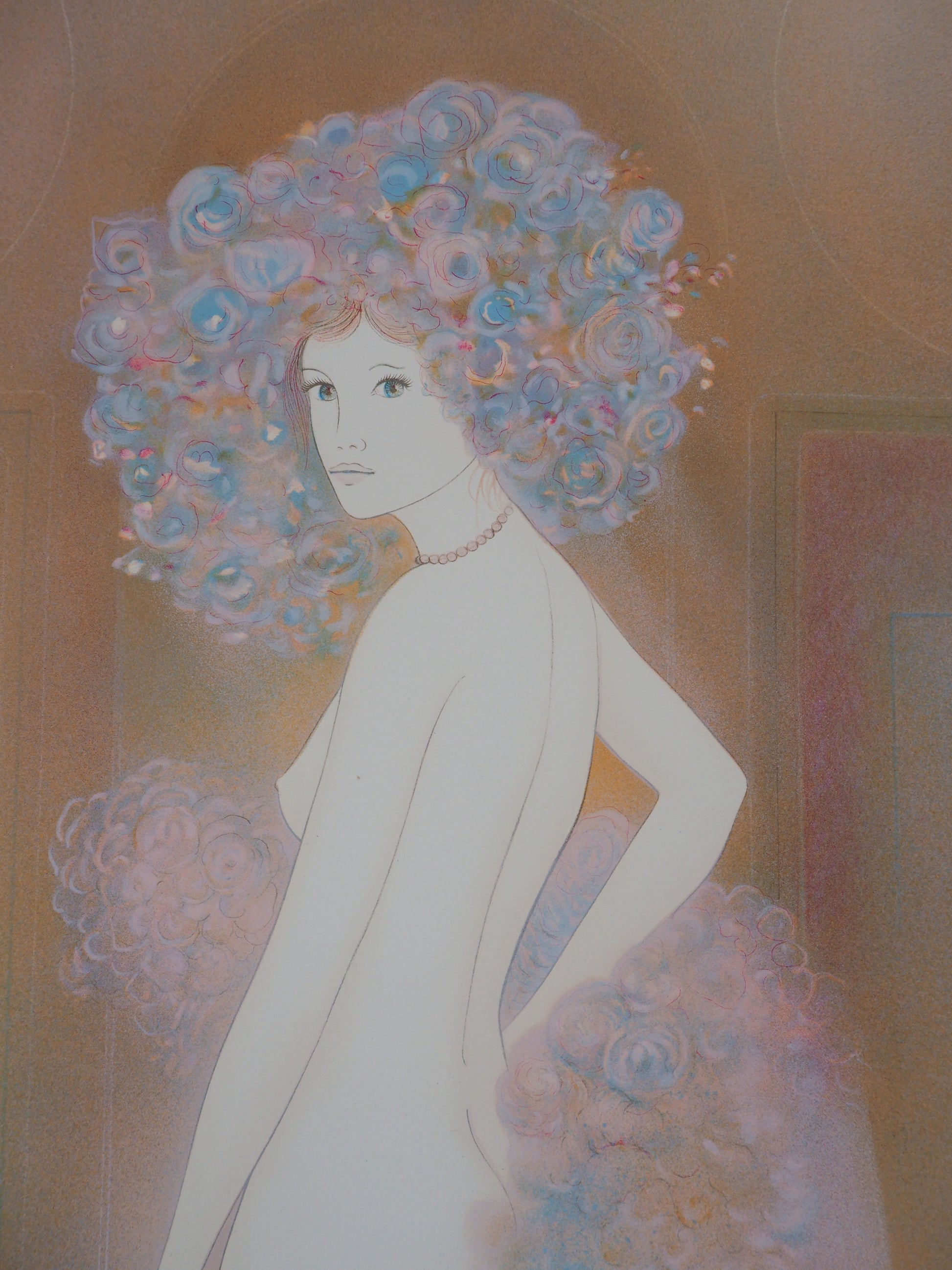 Guy RIBES : Jeune fille en fleurs - Lithographie originale signée