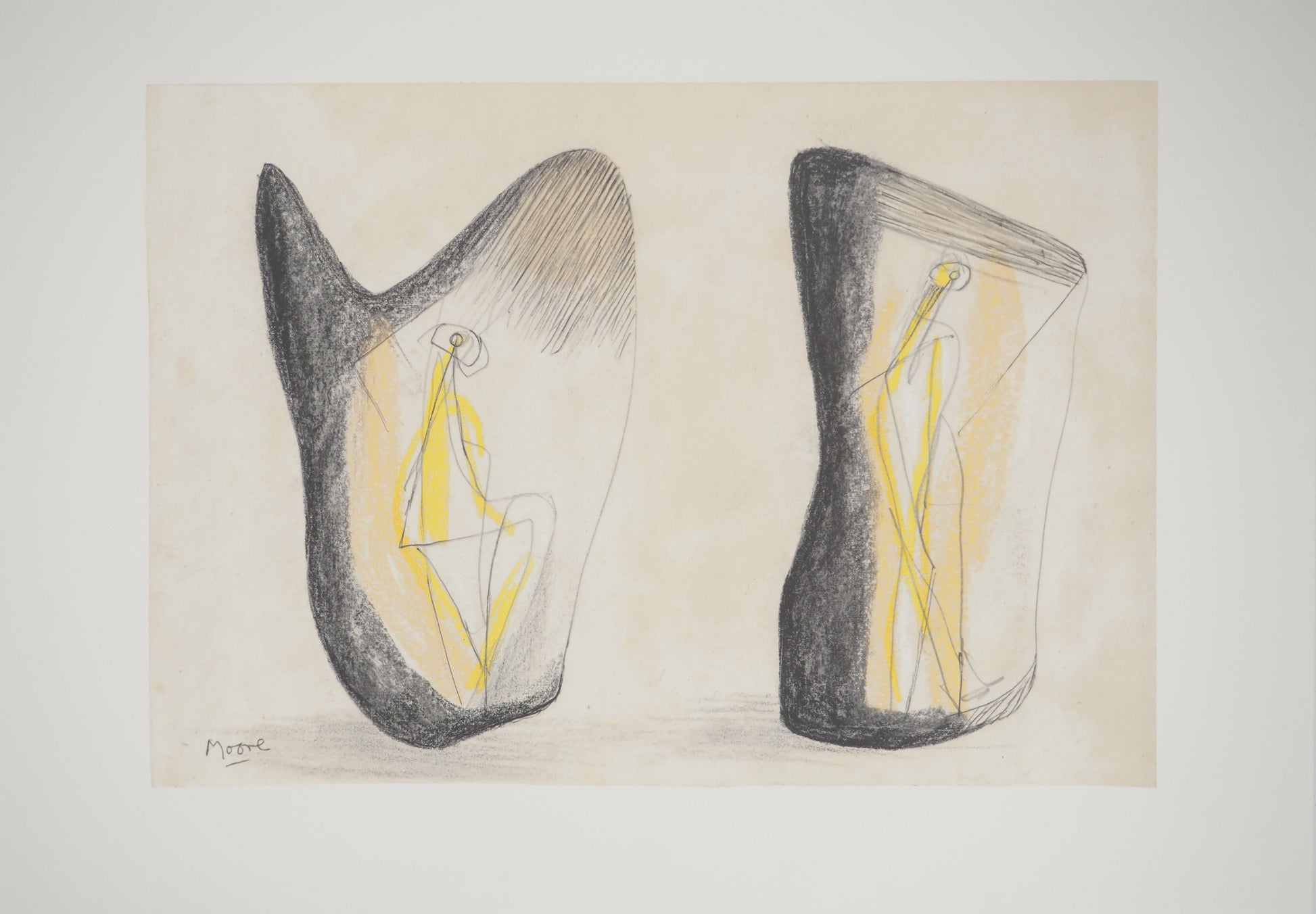 Henry MOORE : Figures abstraites - Lithographie signée