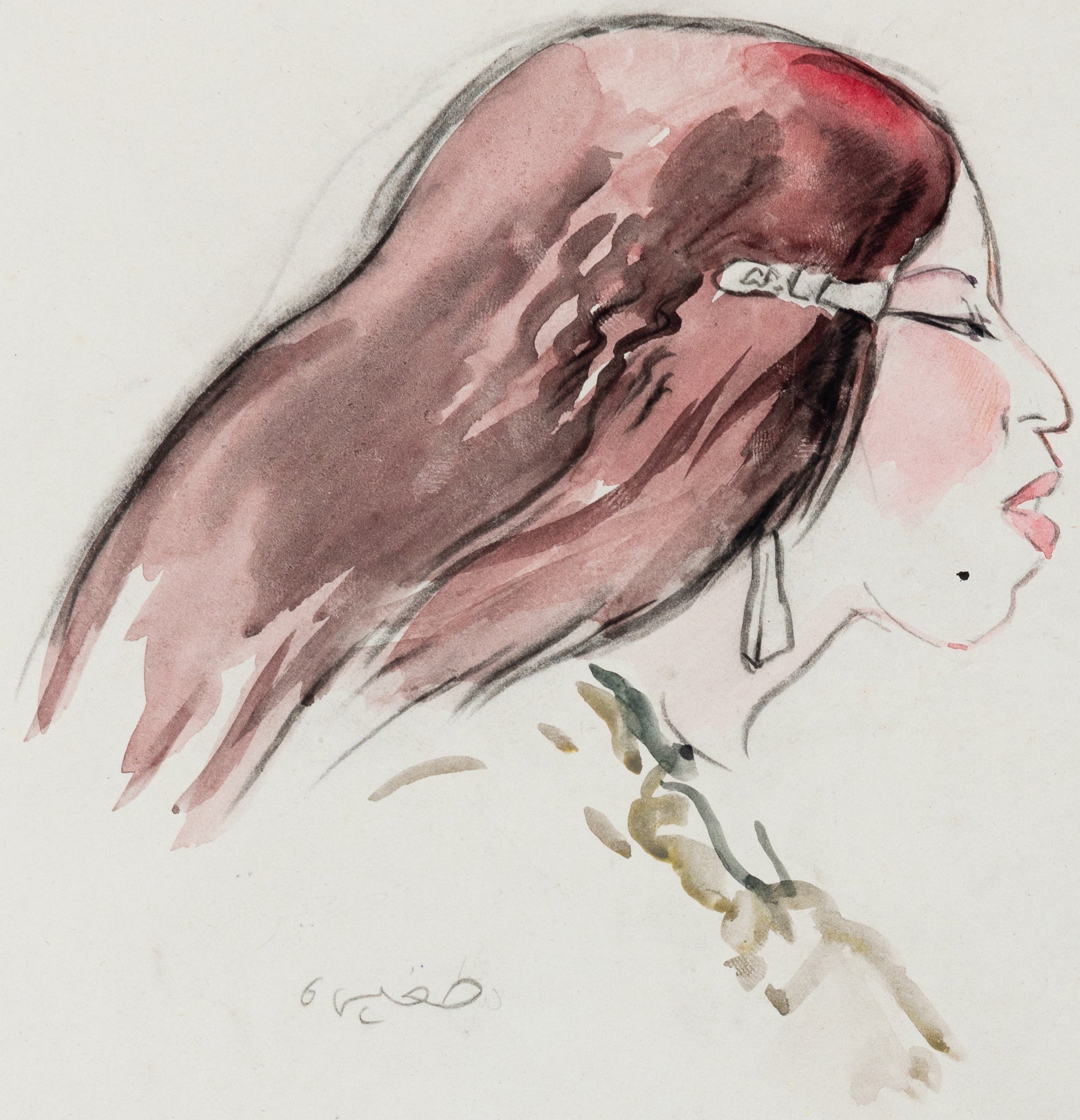 Jacques NAM : Srira, jeune rousse - Dessin original signé