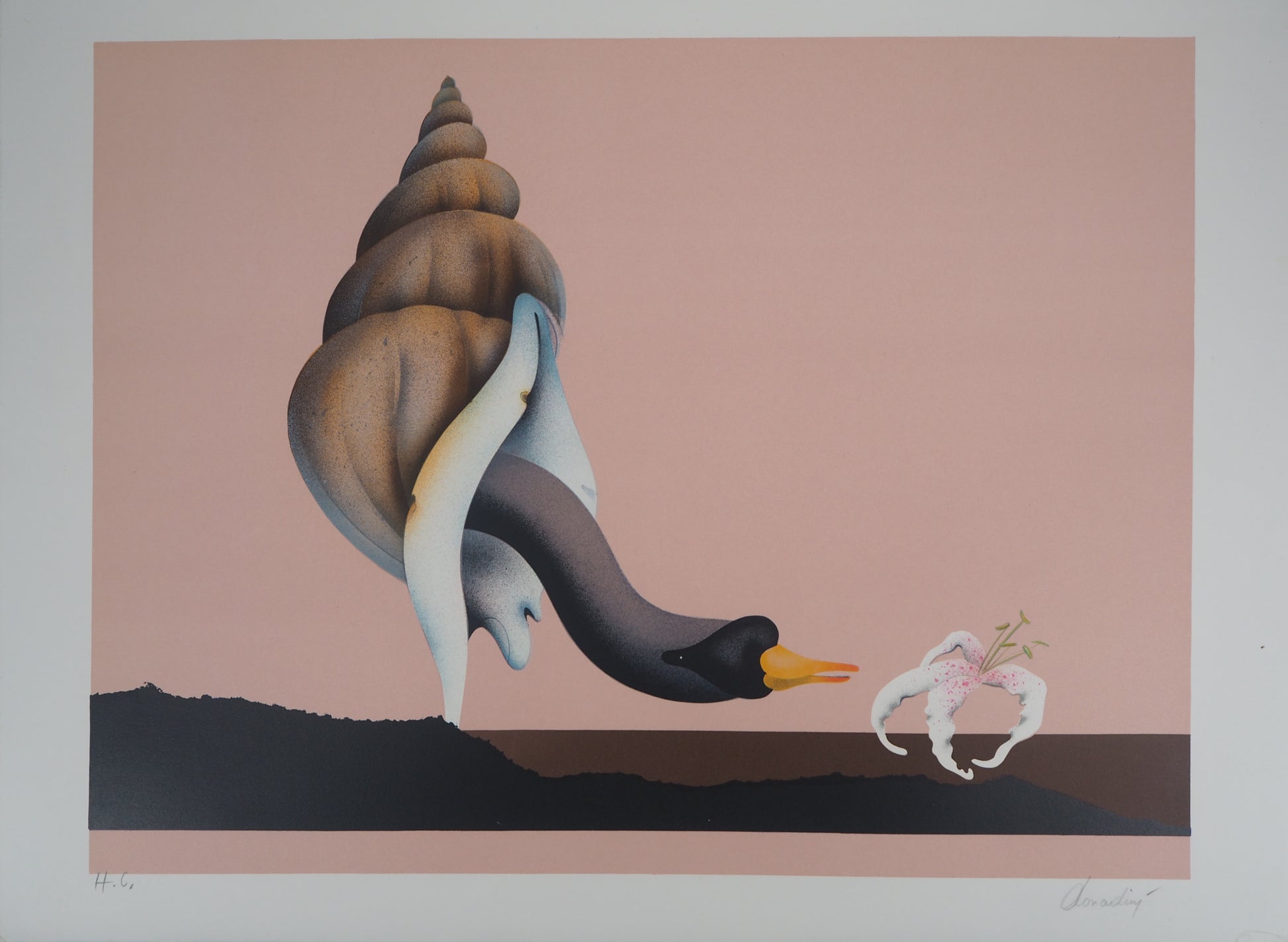 Jean Paul DONADINI : Le cygne et l'orchidée - Lithographie Originale Signée