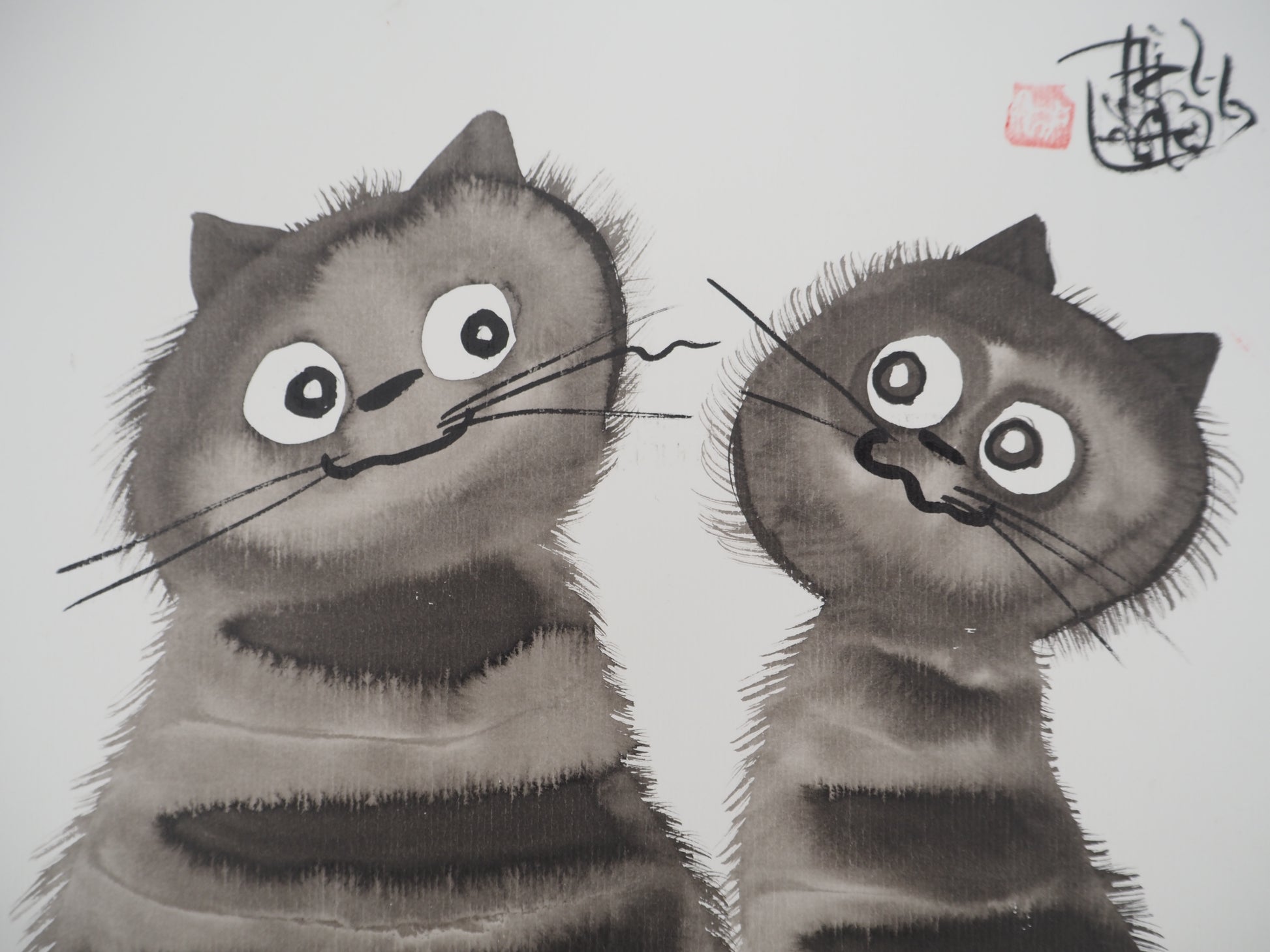 Laszlo TIBAY : Les chats amoureux - Dessin original signé