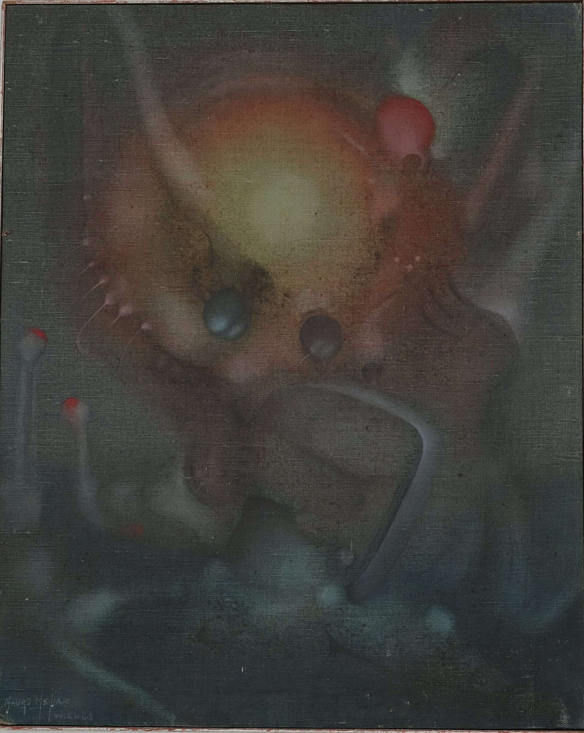 Mauro MEJIAZ : Copulation pluri-dimensionnelle - Huile sur panneau signée