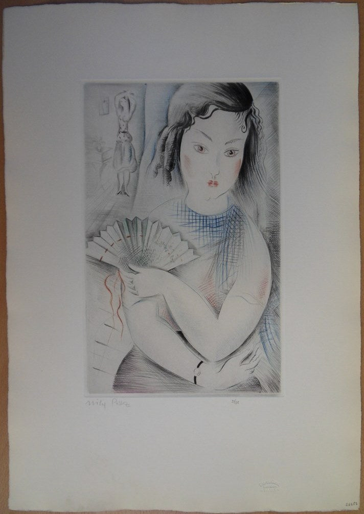 Mily POSSOZ : Jeune fille à l'éventail - Eau-forte originale signée