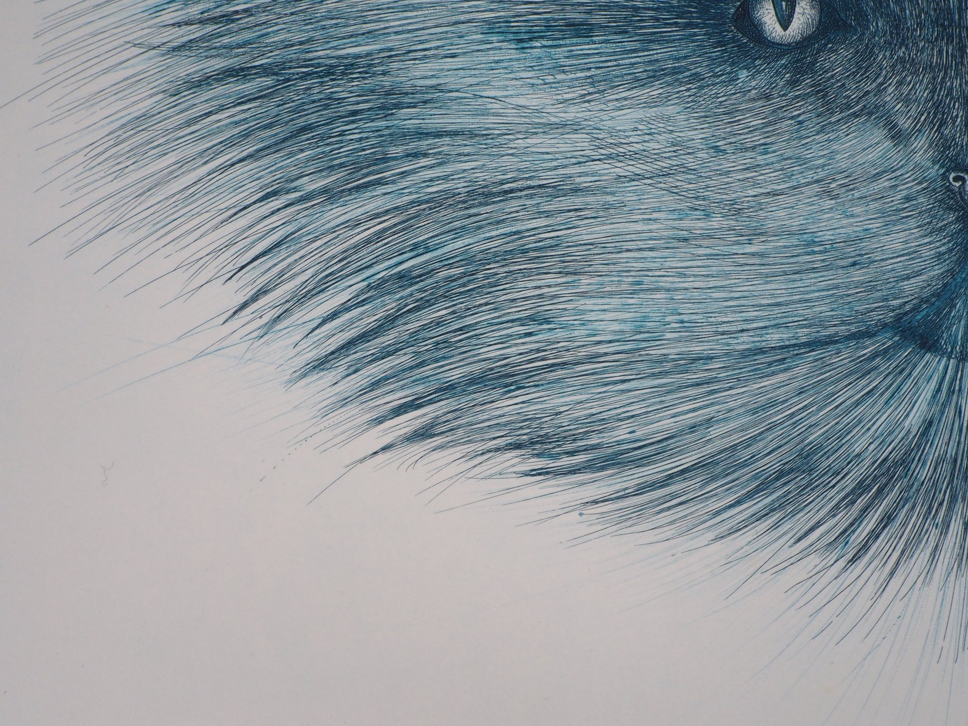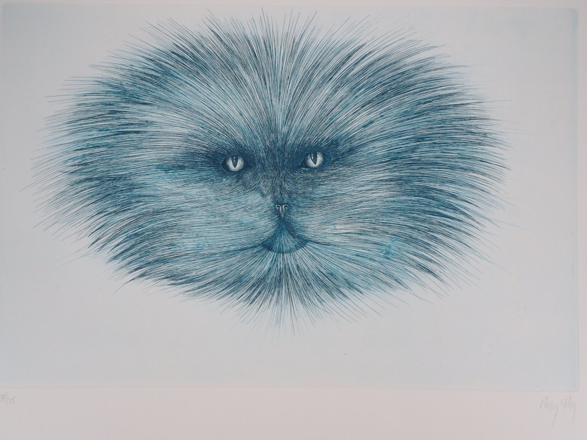 Régis DHO : Tête de chat bleuté - Gravure originale signée